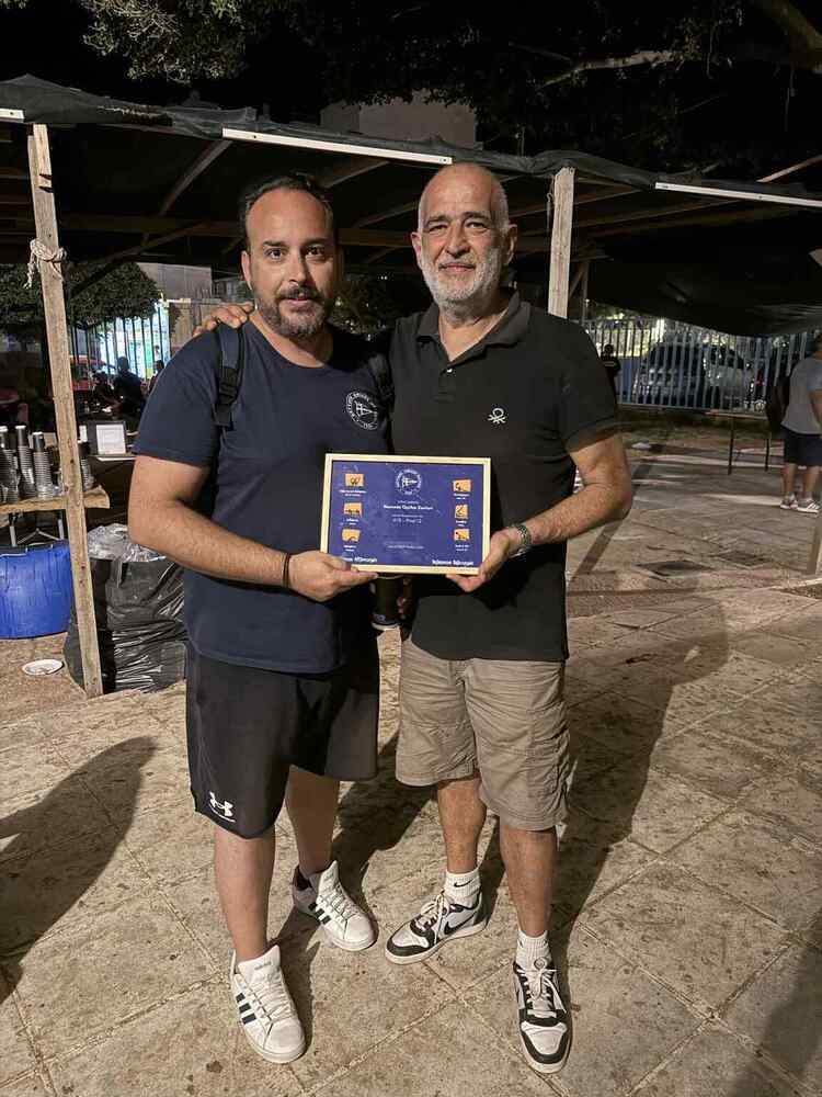 Ο υπεύθυνος έφορος της παιδικής ομάδας του ΝΟΠ Κώστας Παπουλίδης προσφέρει αναμνηστική πλακέτα στον έφορο υδατοσφαίρισης του ΝΟ Χανίων κ. Παντελή Μακριδάκη, για την ανάληψη και διεξαγωγή της τελικής φάσης στα Χανιά. Ευχαριστούμε για την υποδοχή και την διοργάνωση.