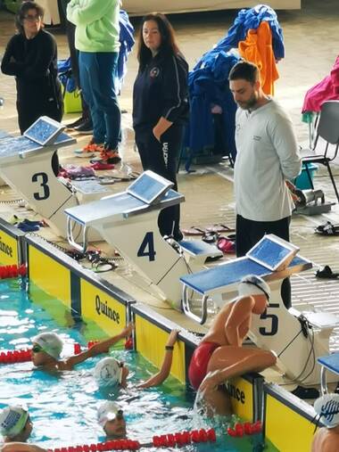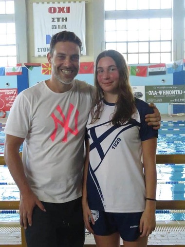 κολυμβήτριες του ΝΟΠ, αλλά και από τους προπονητές τους Λευτέρη