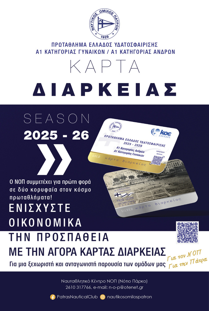Η παρουσία και διατήρηση ανταγωνιστικών ομάδων στο ανώτατο επίπεδο, όπως την φετινή χρονιά επιχειρεί ο ΝΟΠ με ομάδες ανδρών και γυναικών σε δύο από τα καλύτερα παγκοσμίως πρωταθλήματα υδατοσφαίρισης, έχει απόλυτα ανάγκη την ελάχιστη συμπαράσταση των φιλάθλων της πόλης, με την απόκτηση μιας κάρτας διαρκείας ή την αγορά ενός εισιτηρίου για την παρακολούθηση των αγώνων.