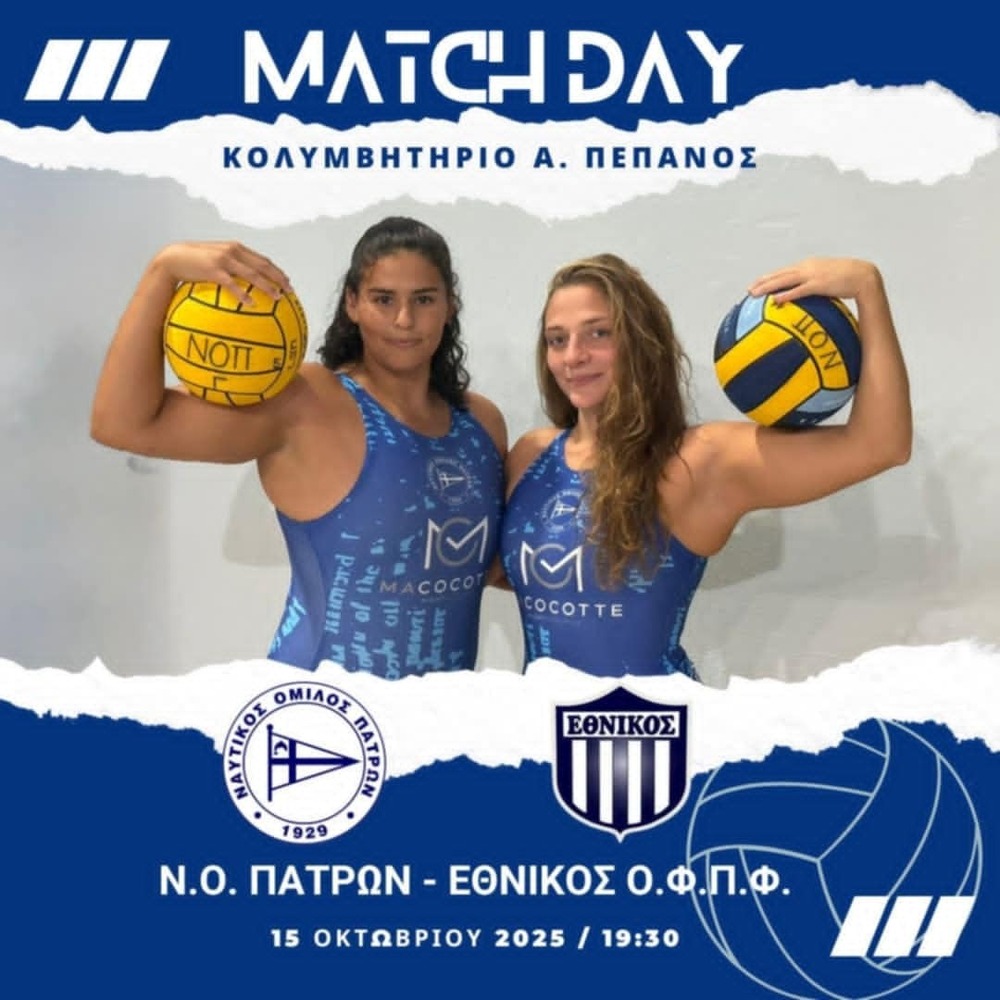 Ώρα 19:30 Εθνικό Κολυμβητήριο Πατρών «Ολυμπιονίκης Αντ.Πεπανός»