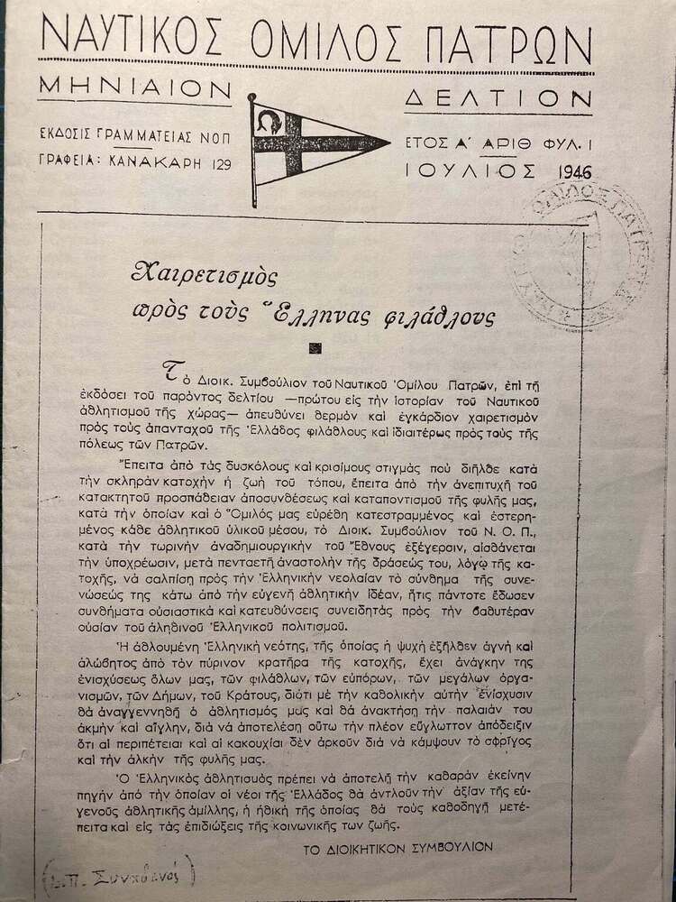 Μαζί σας θα συνεχίσουμε να μεταδίδουμε την αγάπη για την θάλασσα και τον θαλάσσιο αθλητισμό στην νεολαία και τους πολίτες της Πάτρας και στα επόμενα 100 χρόνια.