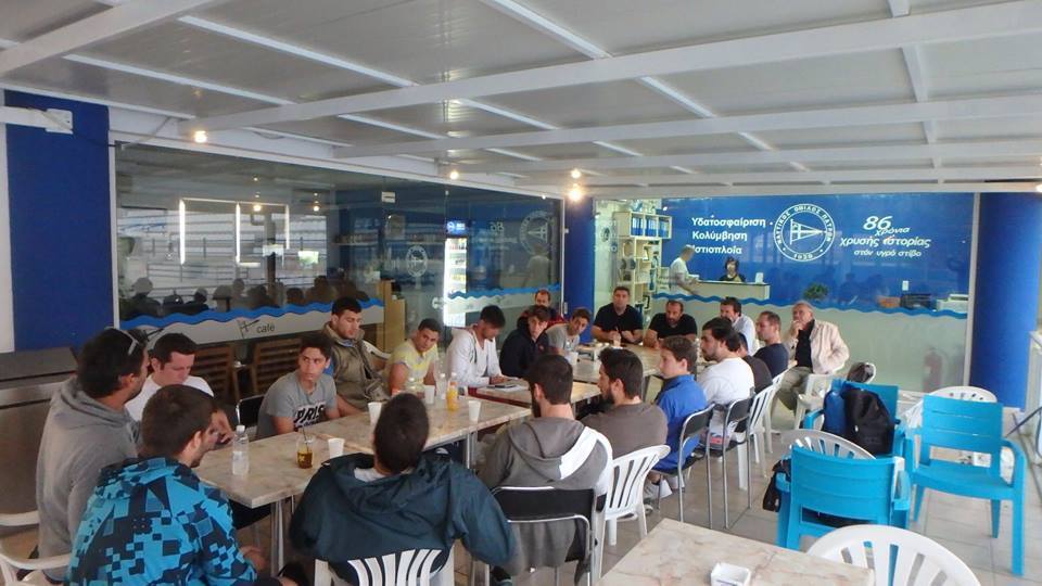 Tην Παρασκευή, μετά το τέλος του τεχνικού σεμιναρίου της ανδρικής ομάδας πόλο και πριν την βραδινή προπόνηση στο Εθνικό κολυμβητήριο, οργανώθηκε στο χώρο του κυλικείου του Ναυτικού Ομίλου Πατρών μία σύντομη συνάντηση γνωριμίας με μέλη του νεοεκλεγέντος διοικητικού συμβουλίου του Ομίλου.