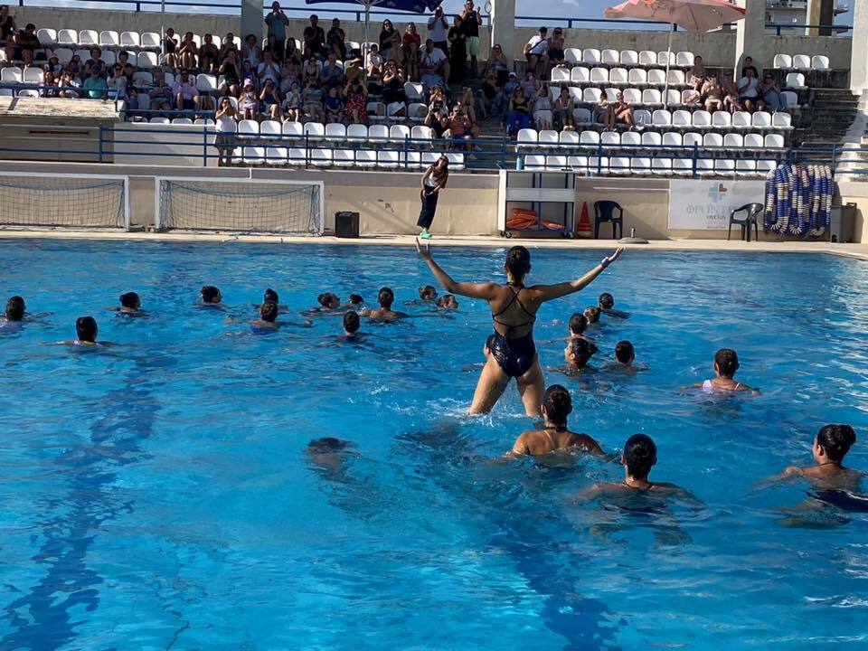 Με ενθουσιασμό και επιφωνήματα χαράς ολοκληρώθηκε η επίδειξη του τμήματος καλλιτεχνικής κολύμβησης του ΝΟΠ στο ανοικτό κολυμβητήριο.