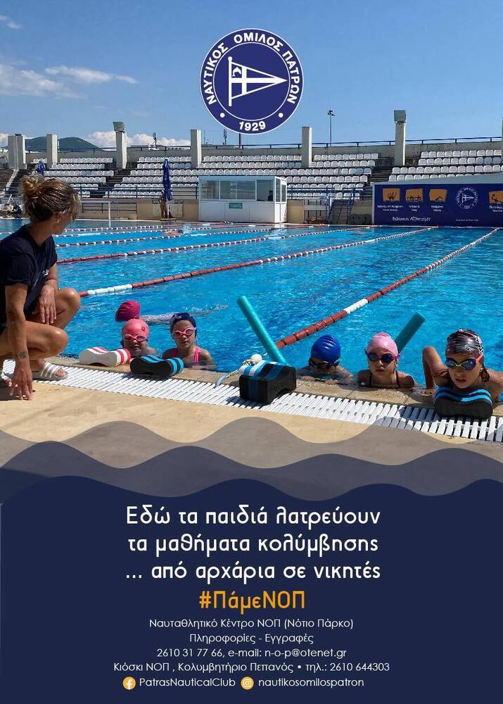 Στη γραμματεία του ΝΟΠ στο Εθνικό Κολυμβητήριο «Ολυμπ. Αντ. Πεπανός», καθημερινά από 15.00 έως 20.00, στο τηλέφωνο 2610 64 43 03
